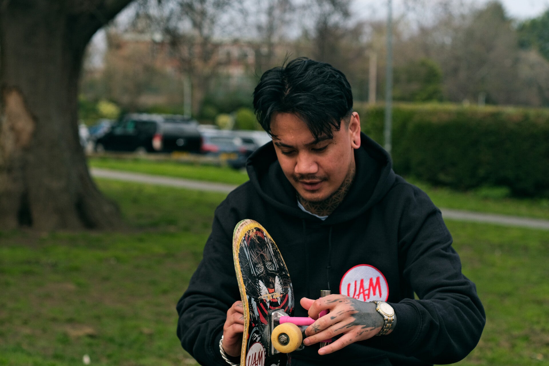 Embroidered UAM hoodie in black